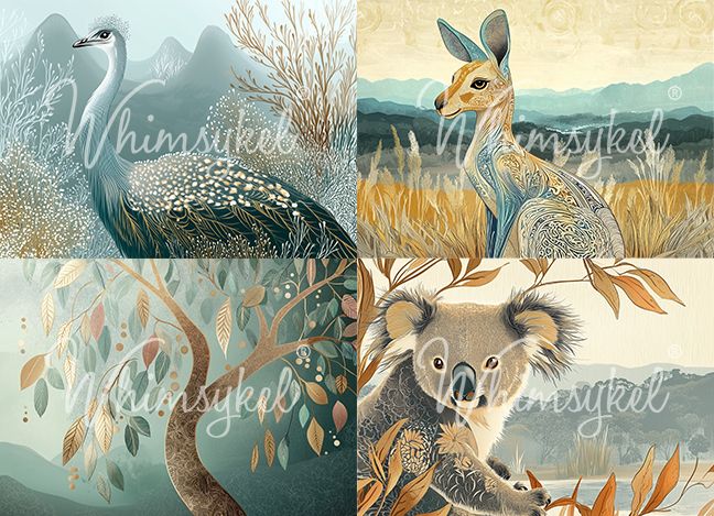 Bring the wonder of Australia into your creative world with Outback Scenes & Whimsy Dreams, a 21"x29" (with four equal-panel designs) decoupage paper designed by the fabulous artist at Whimsykel Design, exclusively for Pureco Paints’ U.S. launch. Featuring enchanting portraits of Australia’s most beloved icons—the emu, kangaroo, koala, and gum tree—this paper blends earthy elegance with whimsical detail. Perfect for furniture makeovers, wall art, and mixed-media projects, it pairs beautifully with the Pureco Chalk Finish palette and is sure to inspire artistry as unique as the Outback itself.